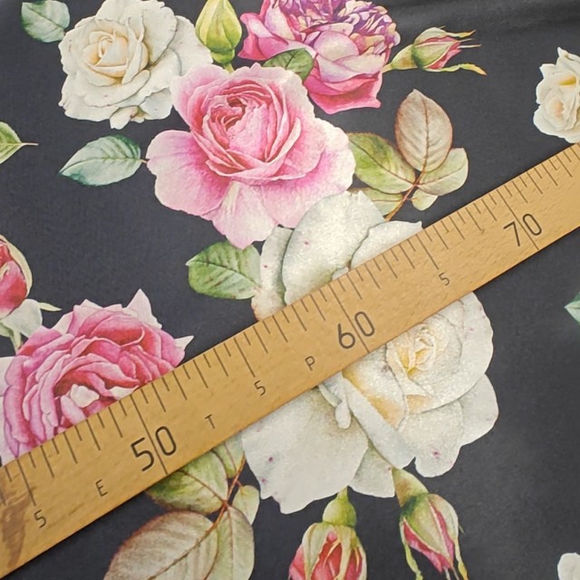 - Атлас с блеском Кристалл с красивыми розами для пошива платьев